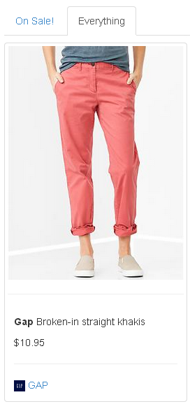 Another confusing aspect is that there are two tabs: On Sale and Everything (which is the items you Covvet). Even though one of the sandals I tagged was on sale, it didn’t show up in the On Sale tab. Neither did the Gap khakis I Covveted, which were on sale for $39.